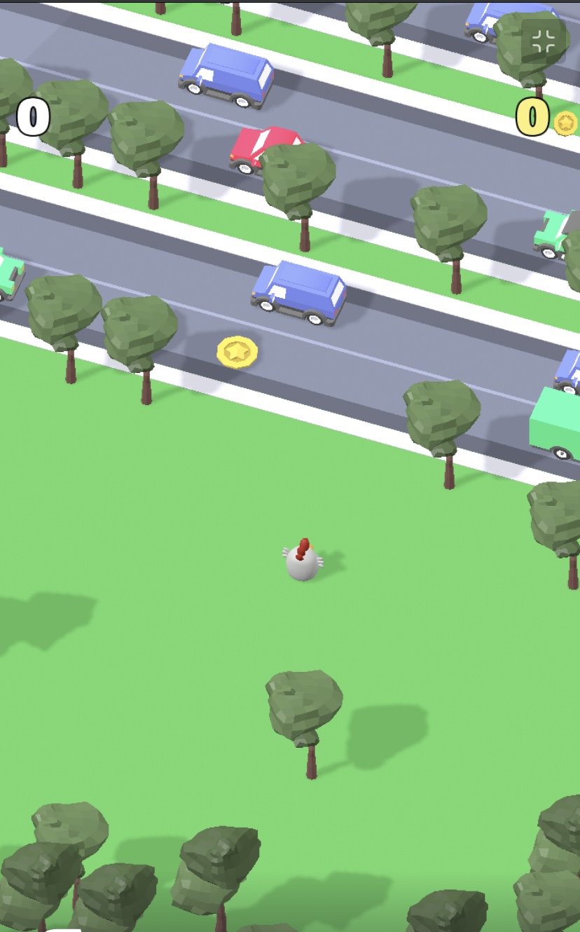 Chicken Crossing Game — Try to cross between the cars. Tap the chicken to move forward, backward, left, or right.
